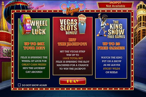 When it comes to special features, Cat in Vegas has it all. The free spins are triggered by landing three of The King Show Scatter symbols on reels 2, 4, and 5. The game will take you to an Elvis Presley show that can award you with up to 20 free spins and 5 Sticky Wilds. The Elvis impersonator will then dance to determine where the Wilds will stand in place while the Free spins round lasts.